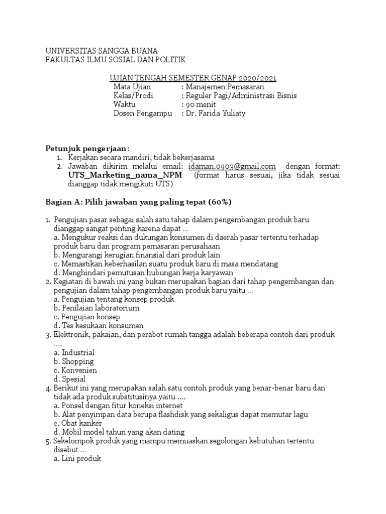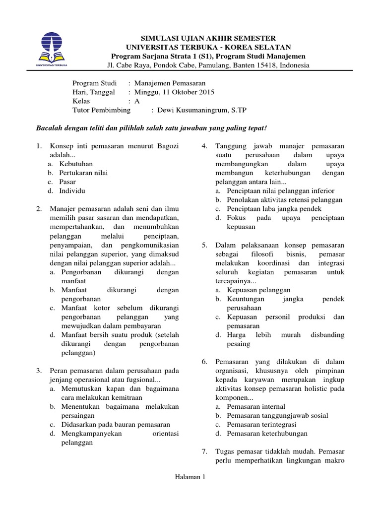 Kisi2 Pts Marketing X Bdp from imgv2-1-f.scribdassets.com Manajemen pemasaran adalah seni dan ilmu memilih pasar sasaran dan mendapatkan, mempertahankan, dan menumbuhkan pelanggan melalui penciptaan, penyampaian, dan pengkomunikasian nilai pelanggan superior. Asosiasi konsep inti pemasaran menurut bagozi adalah. Soal ujian ut manajemen ekma4216 manajemen pemasaran. Konsep inti pemasaran menurut bagozi adalah. Pemasaran adalah suatu proses sosial yang di dalamnya individu dan kelompok mendapatkan apa yang merekabutuhkan dan inginkan dengan menciptakan, menawarkan, dan secara bebas mempertukarkan produk yang bernilai dengan pihak lain. Manajemen pemasaran adalah seni dan ilmu memilih pasar sasaran dan mendapatkan, mempertahankan, dan menumbuhkan pelanggan melalui penciptaan, penyampaian, dan pengkomunikasian nilai pelanggan superior. Manajemen pemasaran adalah seni dan ilmu memilih pasar sasaran dan mendapatkan, mempertahankan, dan menumbuhkan pelanggan melalui penciptaan, penyampaian, dan pengkomunikasian nilai pelanggan superior. Menurut bagozi, konsep inti pemasaran yaitu.