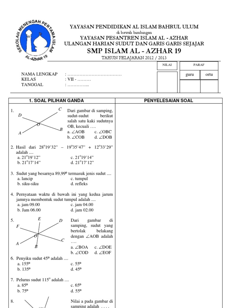 Soal uh matematika smp kelas 7 bab garis dan sudut semester 2 www.tersatu.com i.