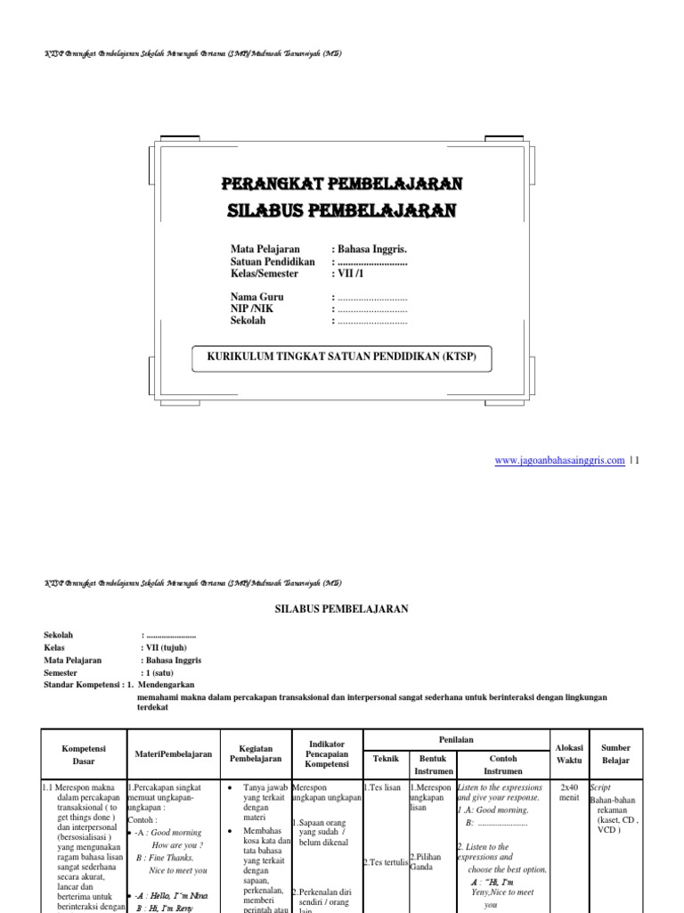 Silabus bahasa inggris kelas 7. Check spelling or type a new query. We did not find results for: Maybe you would like to learn more about one of these?